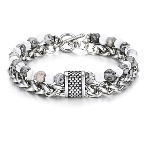 Material: Stainless Steel + Map Stone + Black Glass Bead