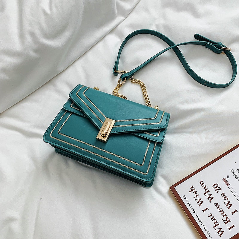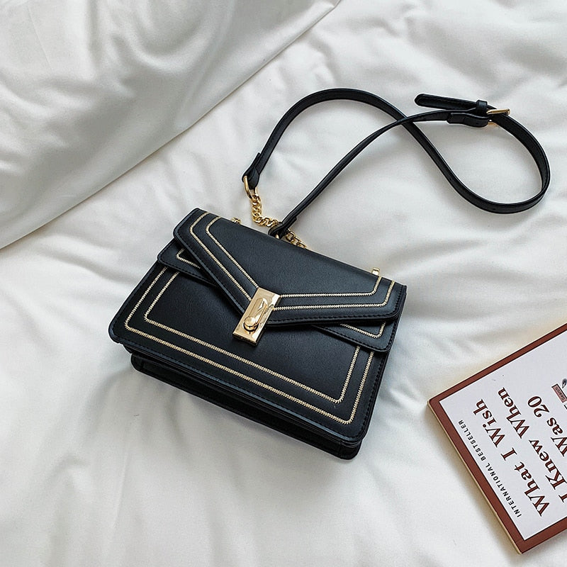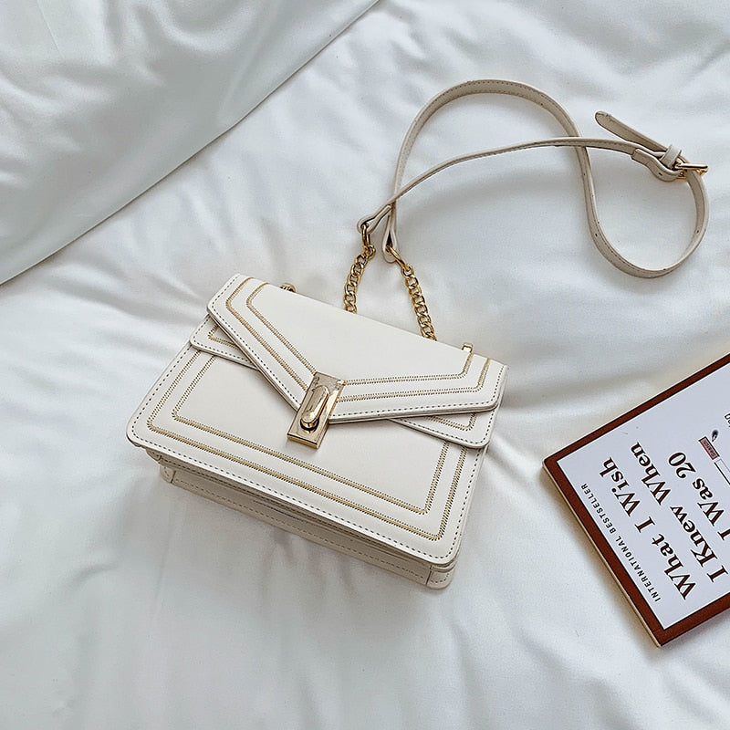 Elegant Leather Female Square Crossbody bag