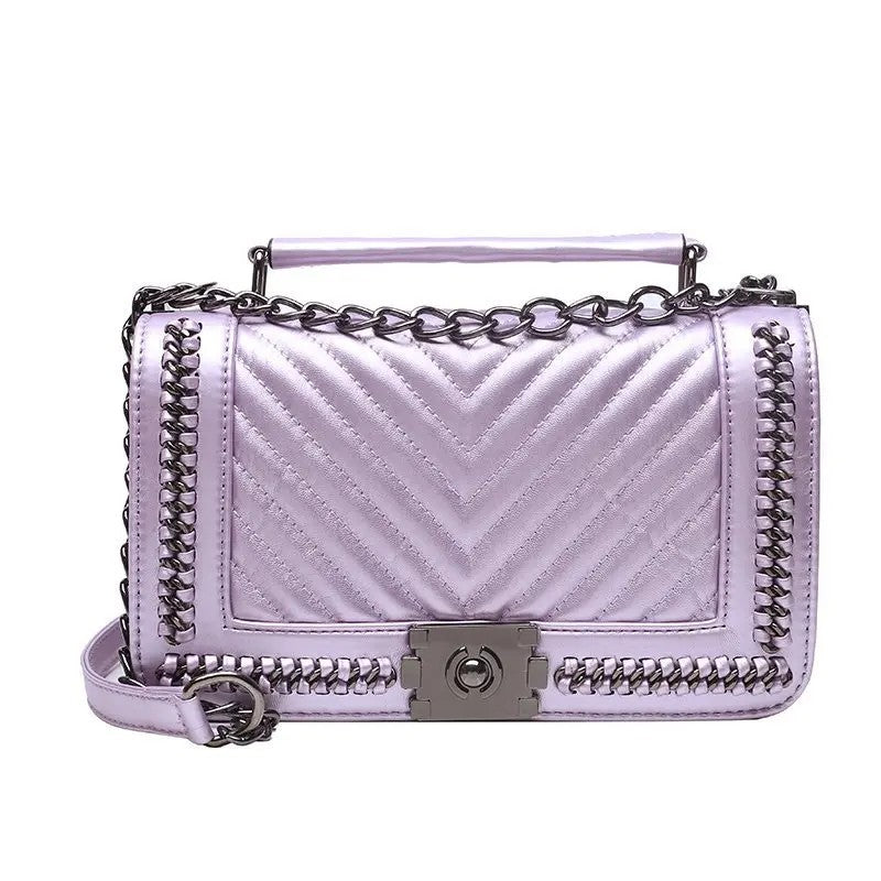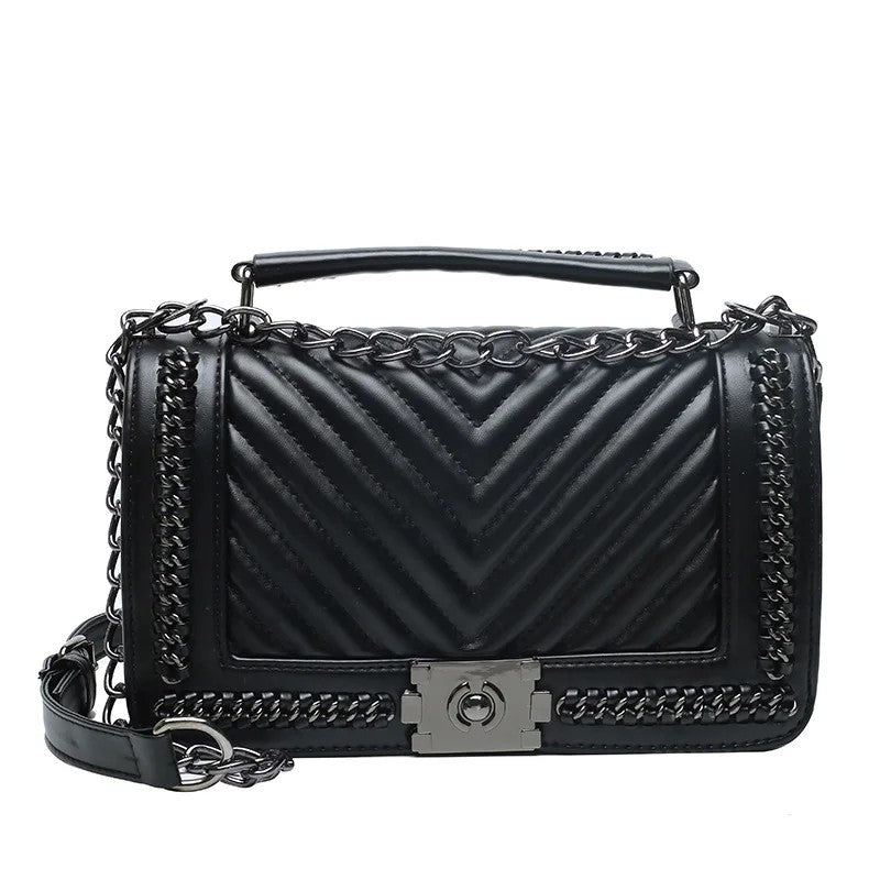 Luxury Women’s Small Square Crossbody Bag – Designer Lock & Chain Shoulder Purse, High-Quality Fashion Handbag