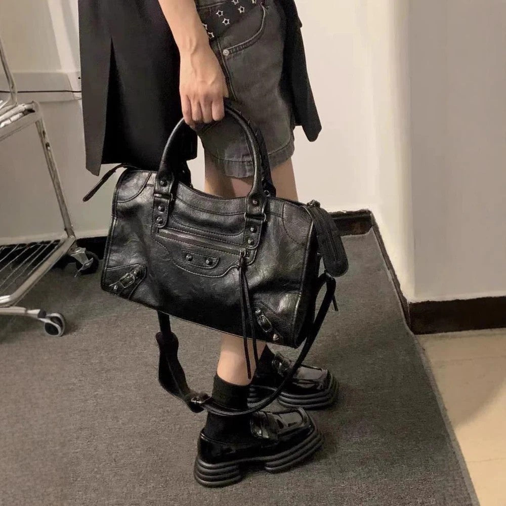 Women’s Trendy Motorcycle Tote – Leather Shoulder & Crossbody