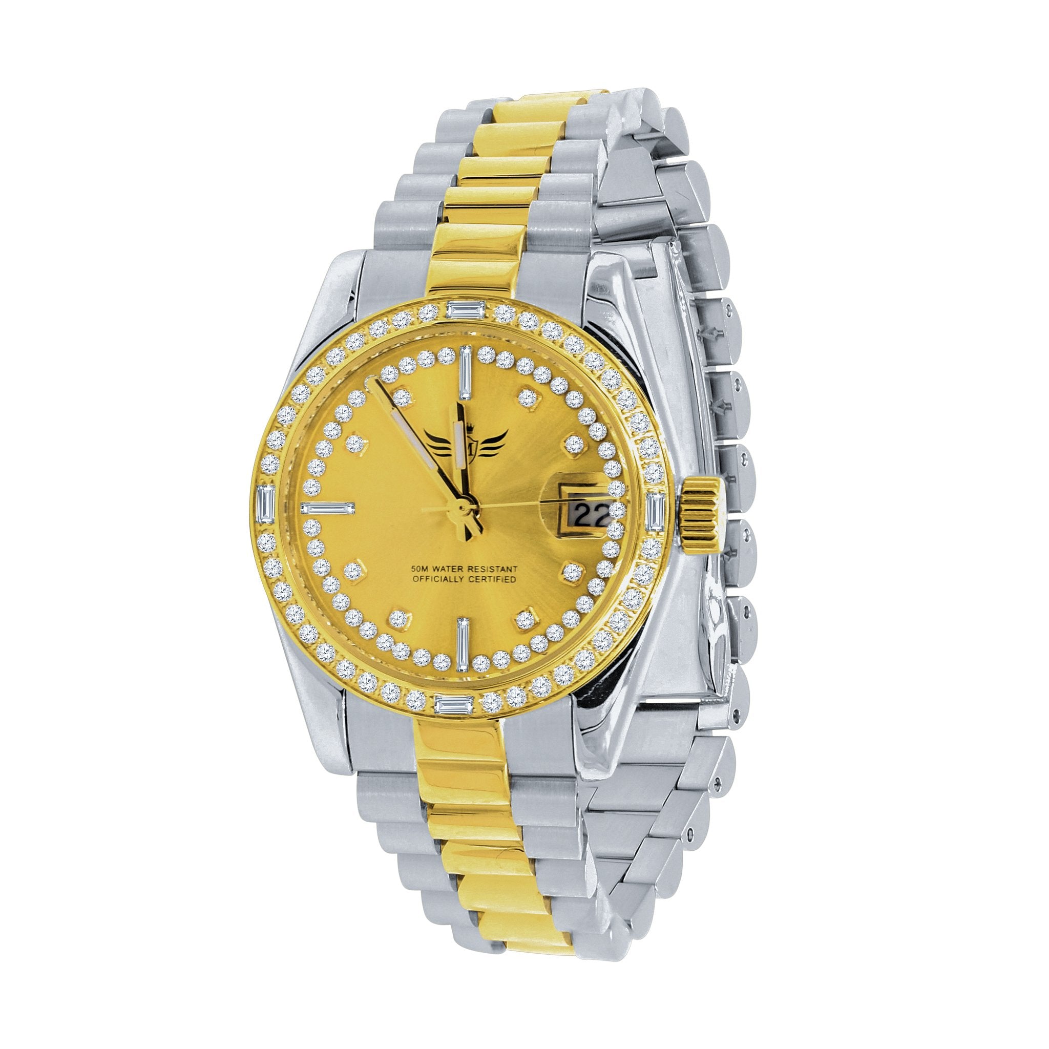ALEXANDRA apart from being simply a time-teller, your wristwatch is the aticulation of your own signature style. This smart, water-proof stainless steel watch with simple round dial featuring unique hour markers is surpassing enough to go with your spirited personality. Seemingly enticing with two-toned metal band and lovely bezel beautified with CZ stones, this timepiece is the bloom of elegance.
