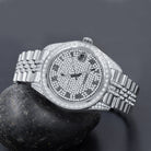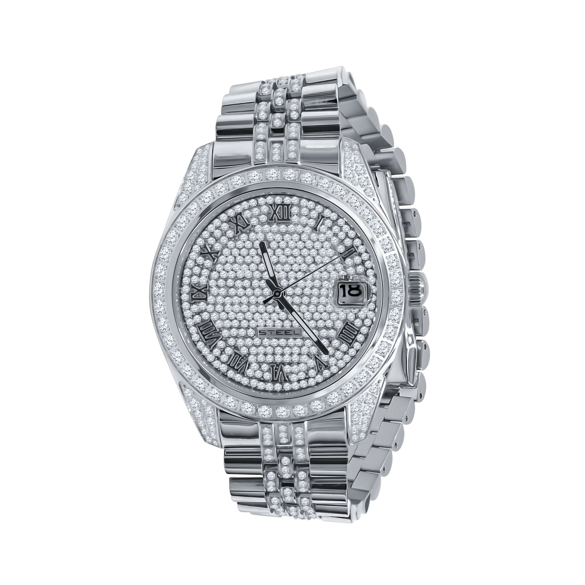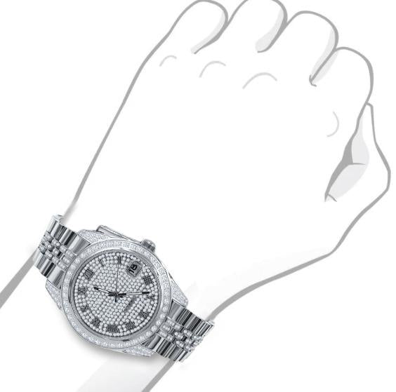IMPERIAL; Your wristwatchis a thing to be noticed and it personifies your character, your moral values and your style. This regal watch features an elegant two-toned metal strap with CZ stones. Round dial heavily embellished with zircon stones, traiting roman hour-markers and date-displayer gives this time-teller a luxuriant finish. The gleaming bezel and effulgent lugs are a terrific addition to this bling. This snazzy watch being low-cost and comfortable, would assuredly complement your influential personality.