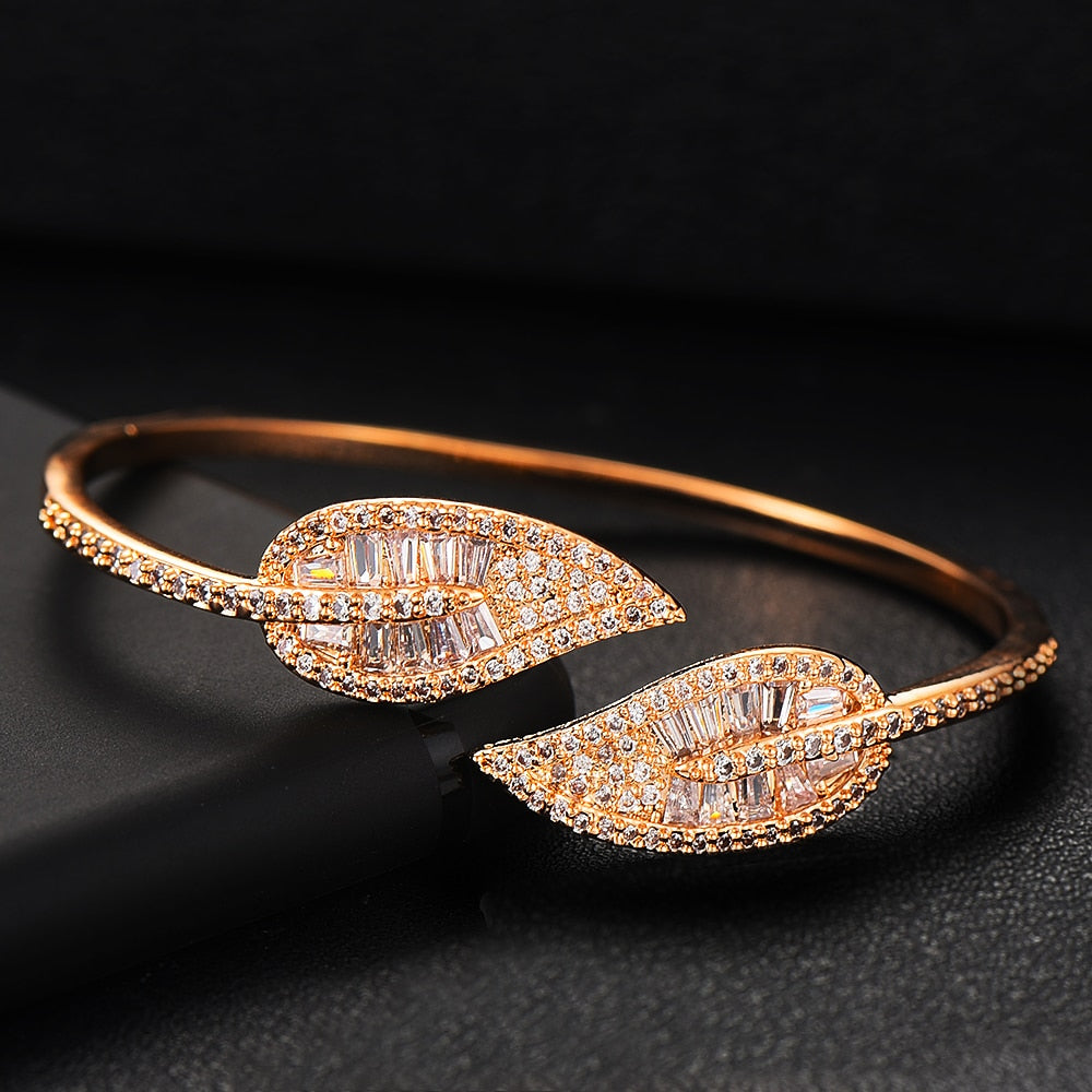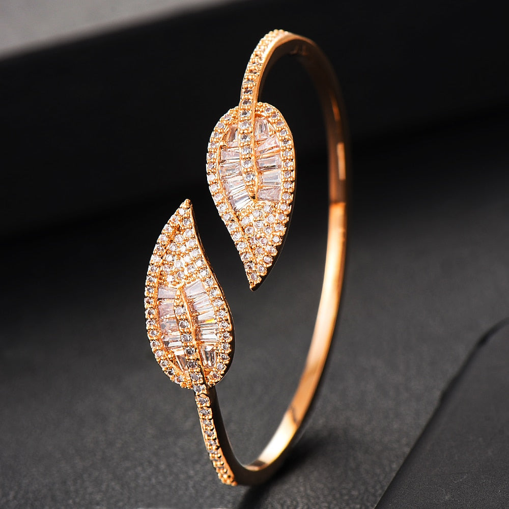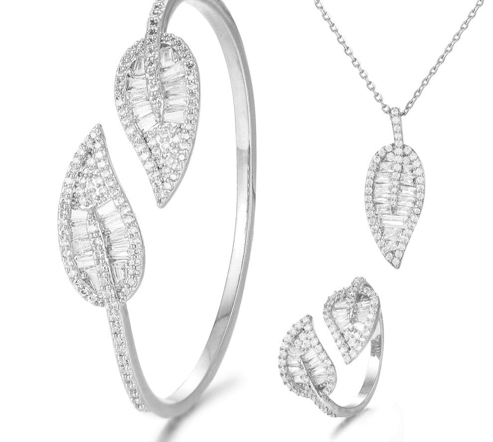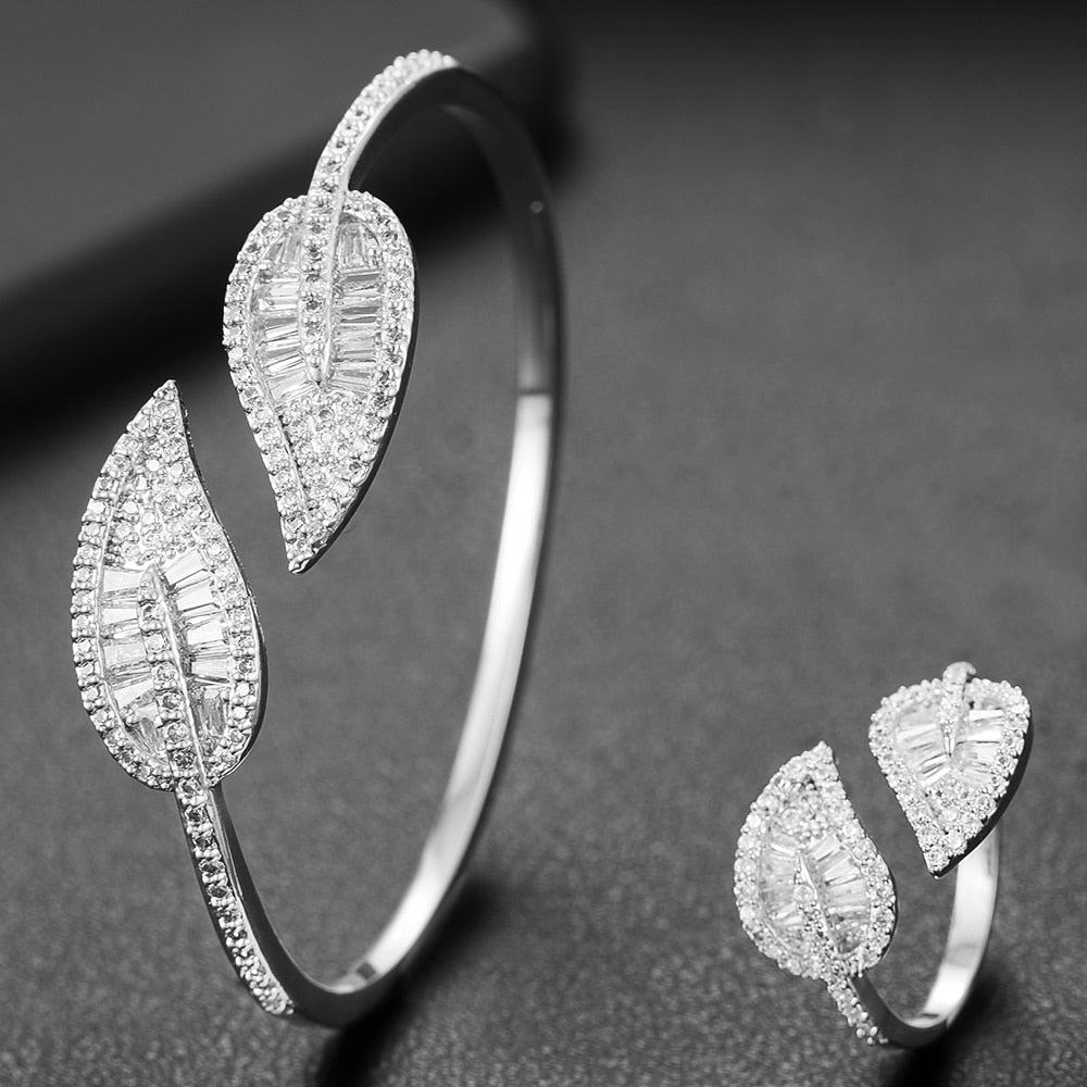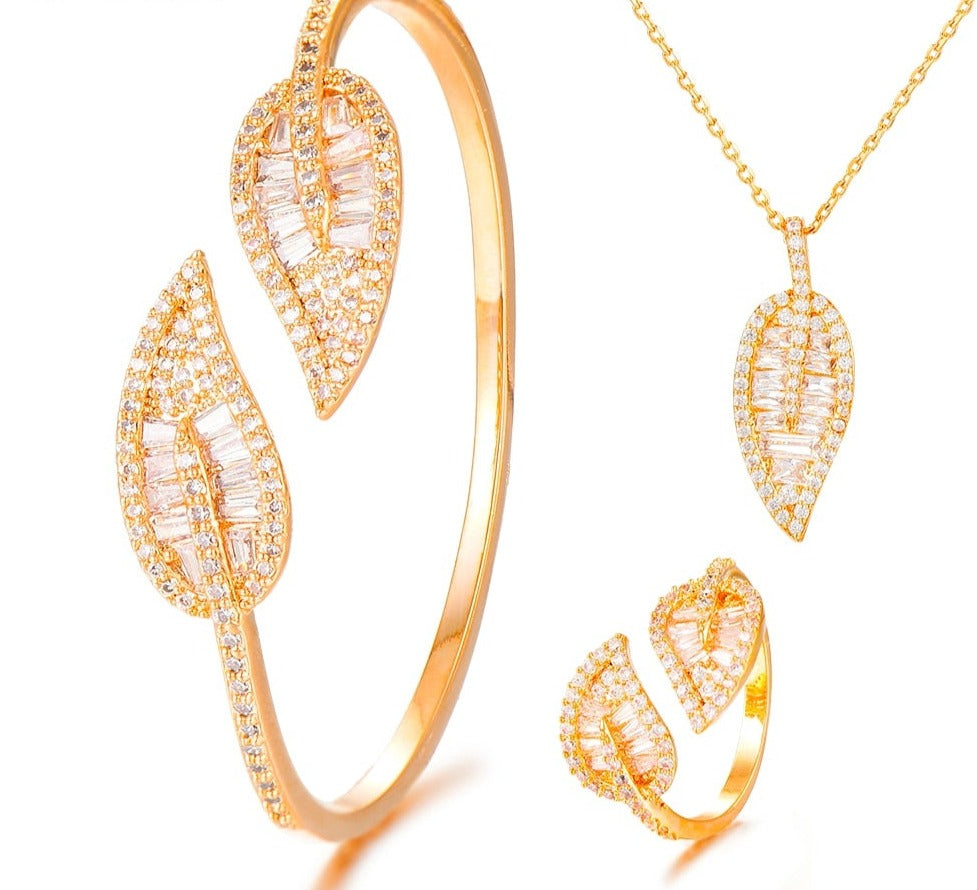 Sparkling Leaf Inspired Adjustable Bangle Ring, Bracelet or Necklace Sets