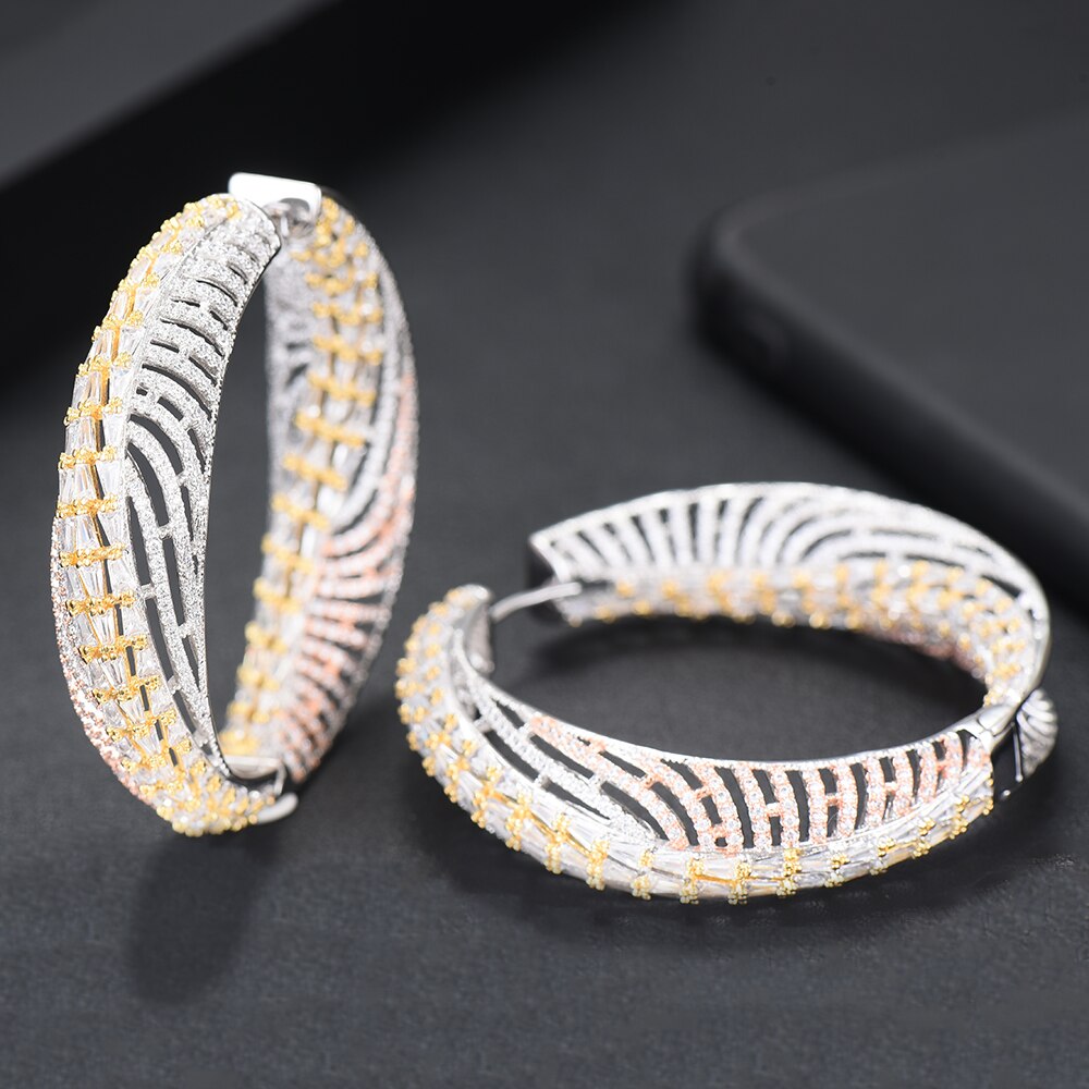 Multicolor Plated Artwork Inspired Leaves Hoop Earrings