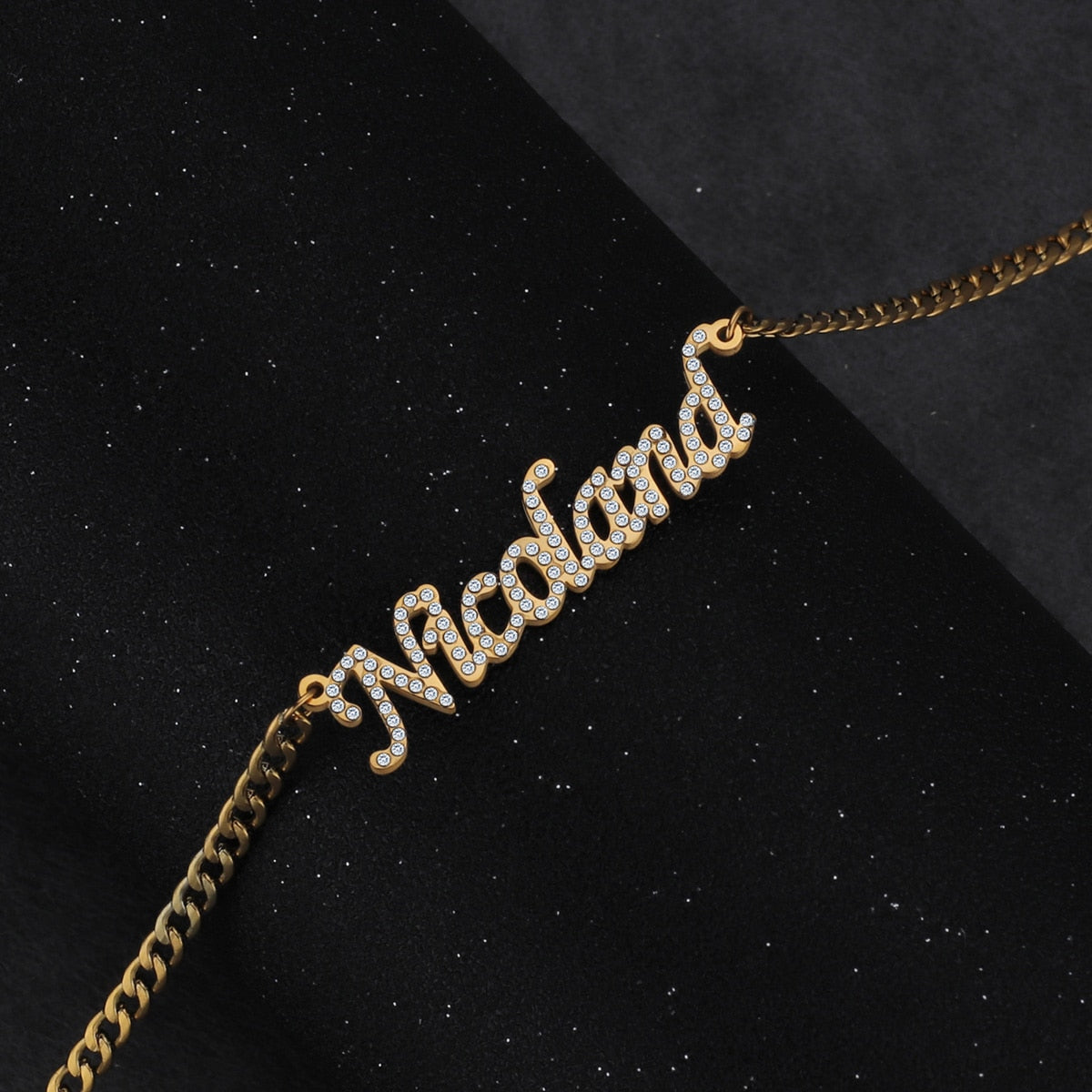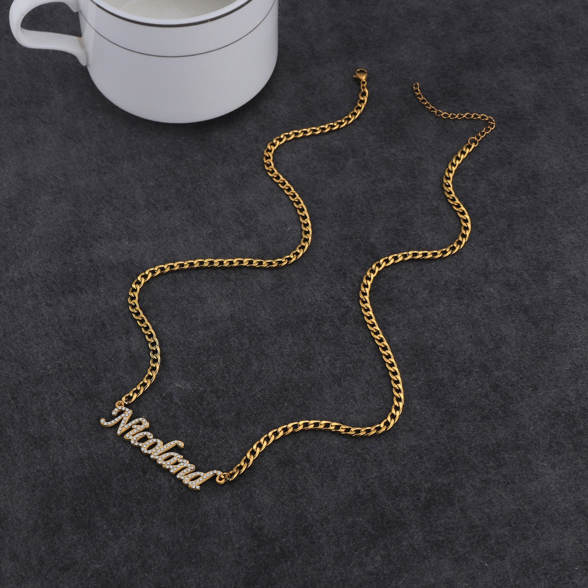 Custom Personalized Name Gold Plated Necklace With Crystal Pendant