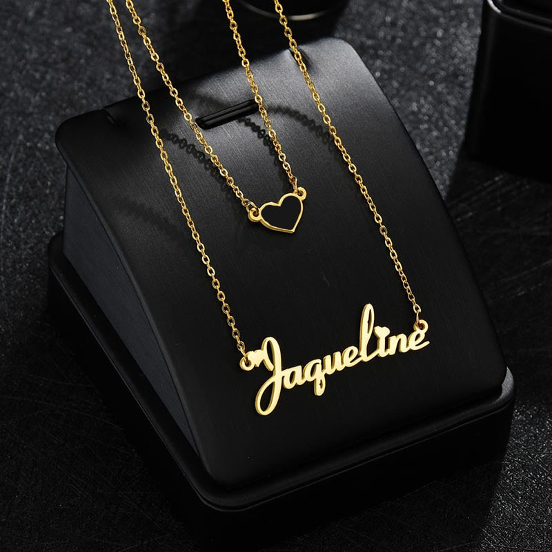 Set of 2 Customized Name Necklaces With Heart Necklace