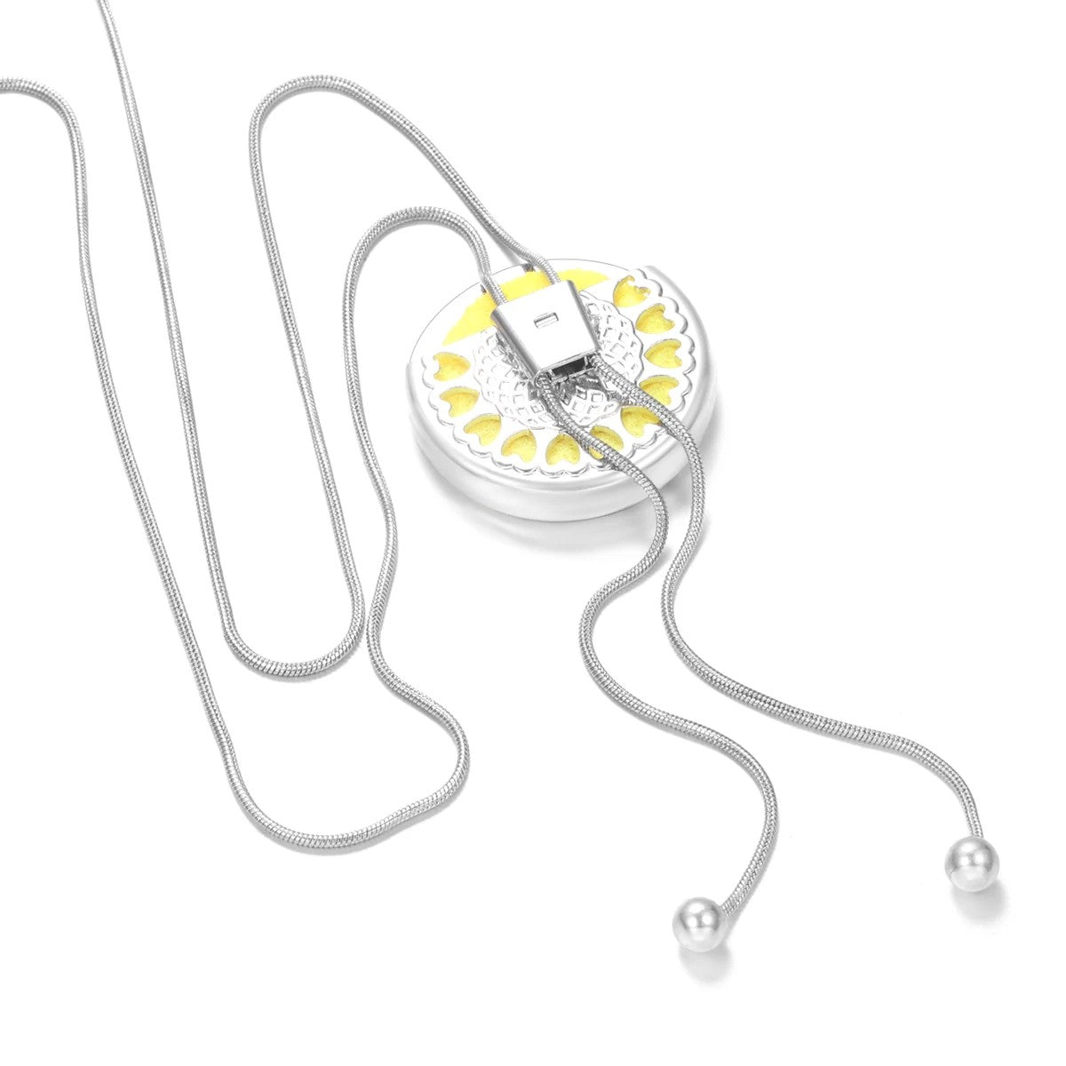 Elevate your everyday style with the calming power of essential oils. This round stainless steel diffuser necklace lets you enjoy the benefits of aromatherapy anywhere - at work, during travel, or while relaxing at home. Simply open the locket and add a few drops of your favorite essential oil to the insert pad for long-lasting fragrance and calm.