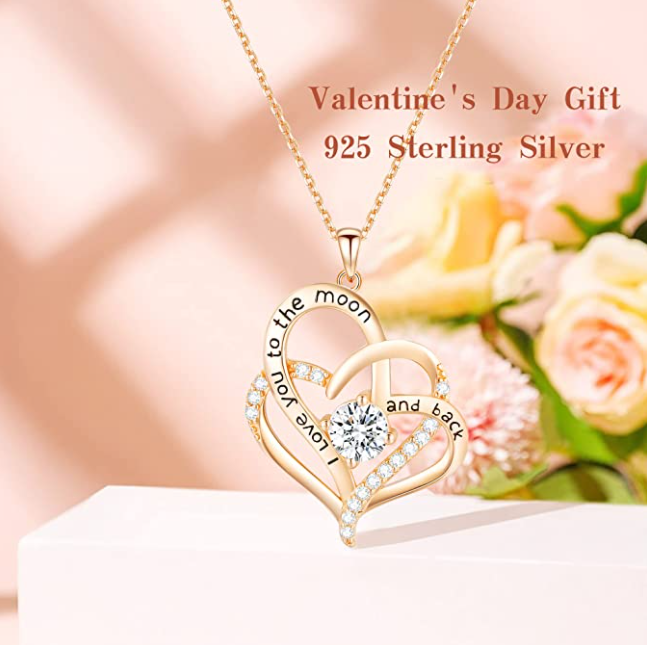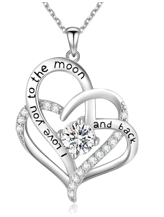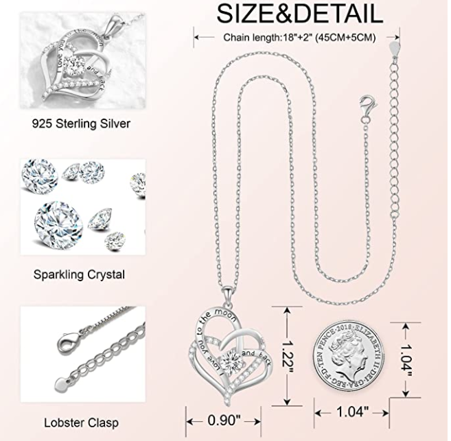- A love message is engraved on the heart-shaped sterling silver necklace: "I love you to the moon and back" to let her know that you will love her forever.