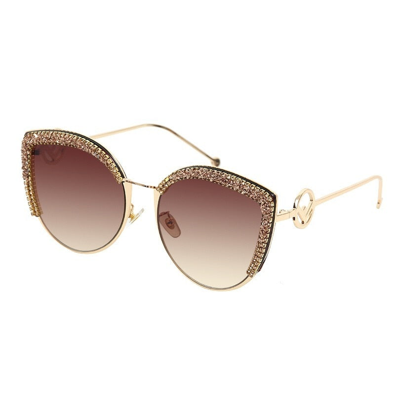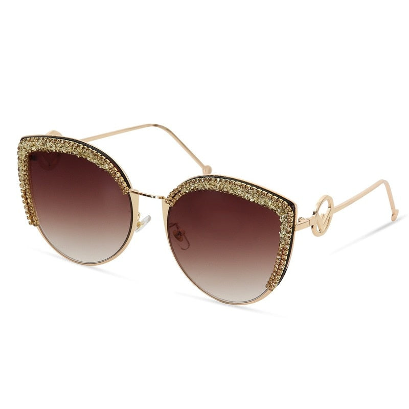 Handmade Crystal Paved Cateye Sunglasses For Women